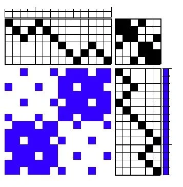 Because the repeats are neither small nor large, I found the threading and treadling easy to memorize, and the threading and weaving seemed to me to go quickly. Also, I found beating to square to be easier than usual, something I did not expect from 24 epi and 8/2 cotton until I realized that this structure has 6-end floats. They are not excessive on these towels in my opinion. There has been no snagging or major deflection with use. Other students in the class mentioned that this structure had worked well for them in baby blankets. I have to agree, since the cloth is lovely.