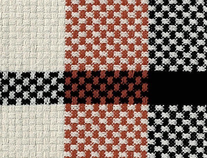 Warp and weft yarns: 8/2 cotton by Brassard in Orange and Black, and Georgia Yarn Company 8/2 Natural.